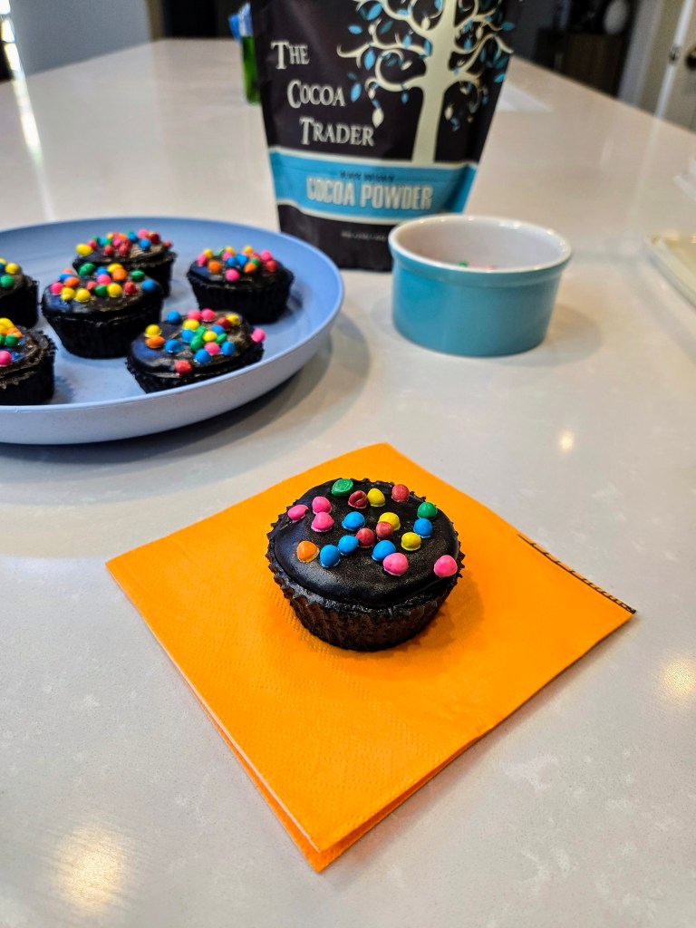 - Line muffin tin with 8 silicone cupcake liners and preheat oven to 350.
