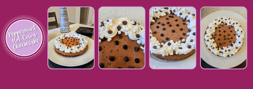 Sometimes you just need a warm mug of hot cocoa topped with an alarming amount of marshmallows to make it through the holiday (Baileys optional, but strongly recommended). Since hot cocoa is the secret ingredient to a warm heart, I wanted to test this theory out by partaking in one of my favorite past times: turning delicious seasonal beverages into dessert. I will say making a cheesecake with actual hot chocolate in it requires a level of patience I do not possess…I could not wait long enough for my peppermint hot cocoa to cool off before mixing in, and, as a result, had quite a few burst bubbles on the top of my cheesecake. So she doesn’t have buttery smooth skin–she’s still delicious. And now I can live out my pre-New-Year’s-Eve feasting plans by having a balanced diet of a mug of peppermint hot chocolate in one hand and a giant slice of peppermint hot cocoa cheesecake in the other. It’s the perfect blend…