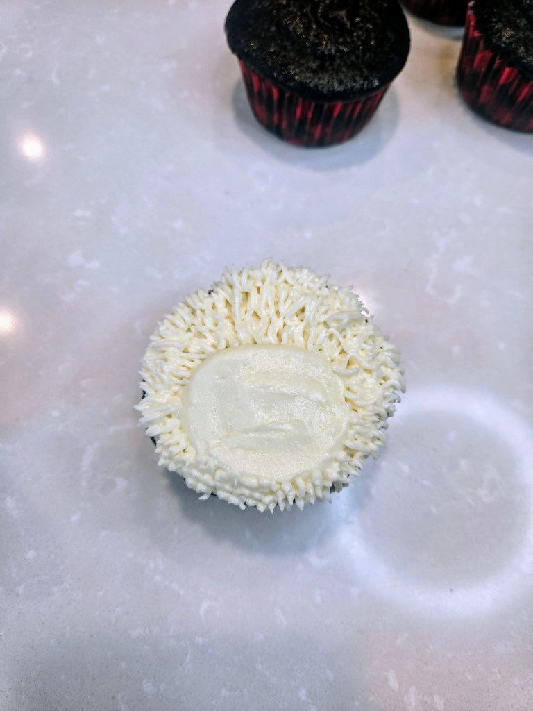 - You will need to crumb coat your cupcakes with plain white frosting before piping.