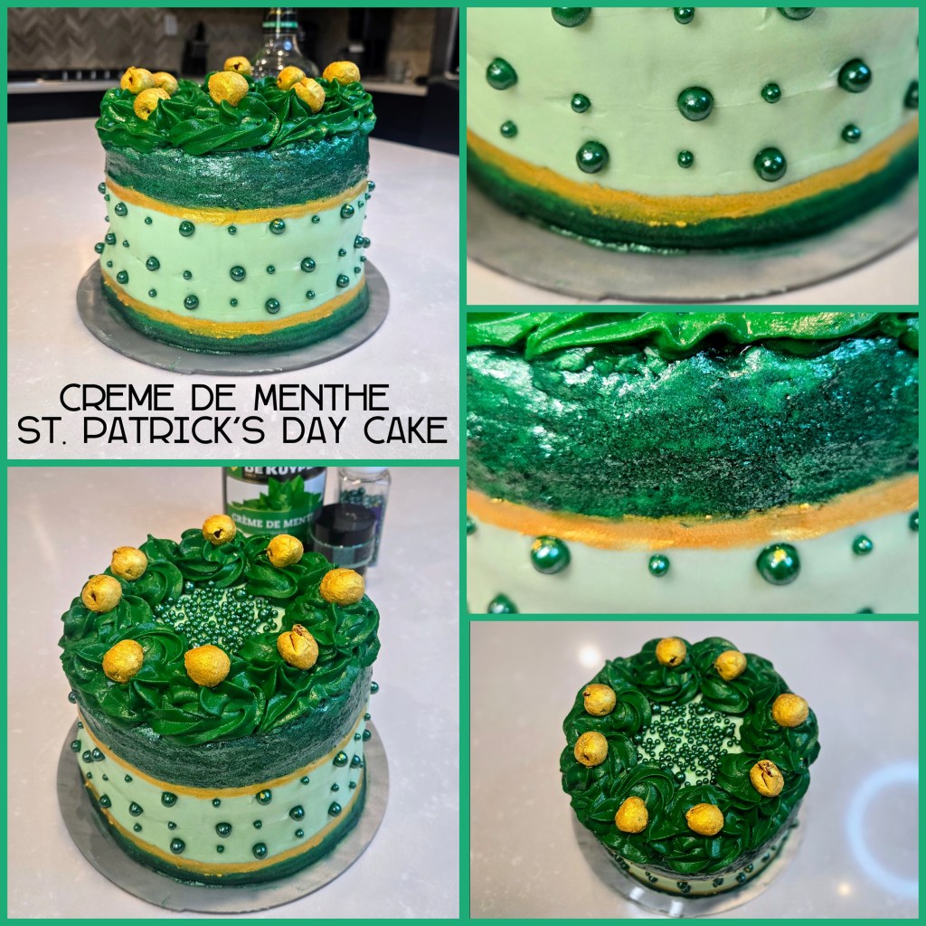Green–the color of some my favorite things…my eyes, money, and all foods at St. Patrick’s Day. As St. Patrick’s Day approaches, it’s time to shamrock your taste buds with a cake that’s mint to be the life of the paddy. Introducing the Crème de Menthe cake—a dessert so good, it’ll have you Dublin over with delight. Packed with loads of minty, boozy goodness, this cake promises to lift your spirits higher than a leprechaun on a pogo stick. You can keep the pot of gold at the end of the rainbow, I’m hoarding this cake like it’s my lucky charm.