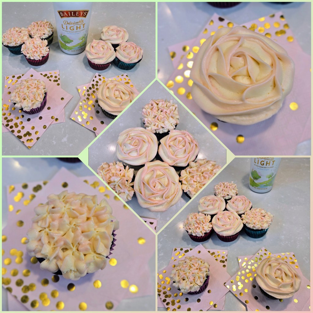 When your mother-in-law swoons over her birthday cake in June, you know you’ve set the bake-bar high… so for my grandmother-in-law’s 84th birthday, I had to brew up something just as special. Enter: my famous Guinness chocolate cupcakes topped with Baileys cream cheese frosting, piped into dreamy two-toned pink and white roses and hydrangeas. These little beauties are proof that beer and buttercream can live in perfect harmony…in a stout-standing flavor. I also say “famous” because for a solid 5 years when I was a newbie baker, all our friends requested this flavor for every one of their birthdays…I always surround myself with people that have good taste, what can I say.