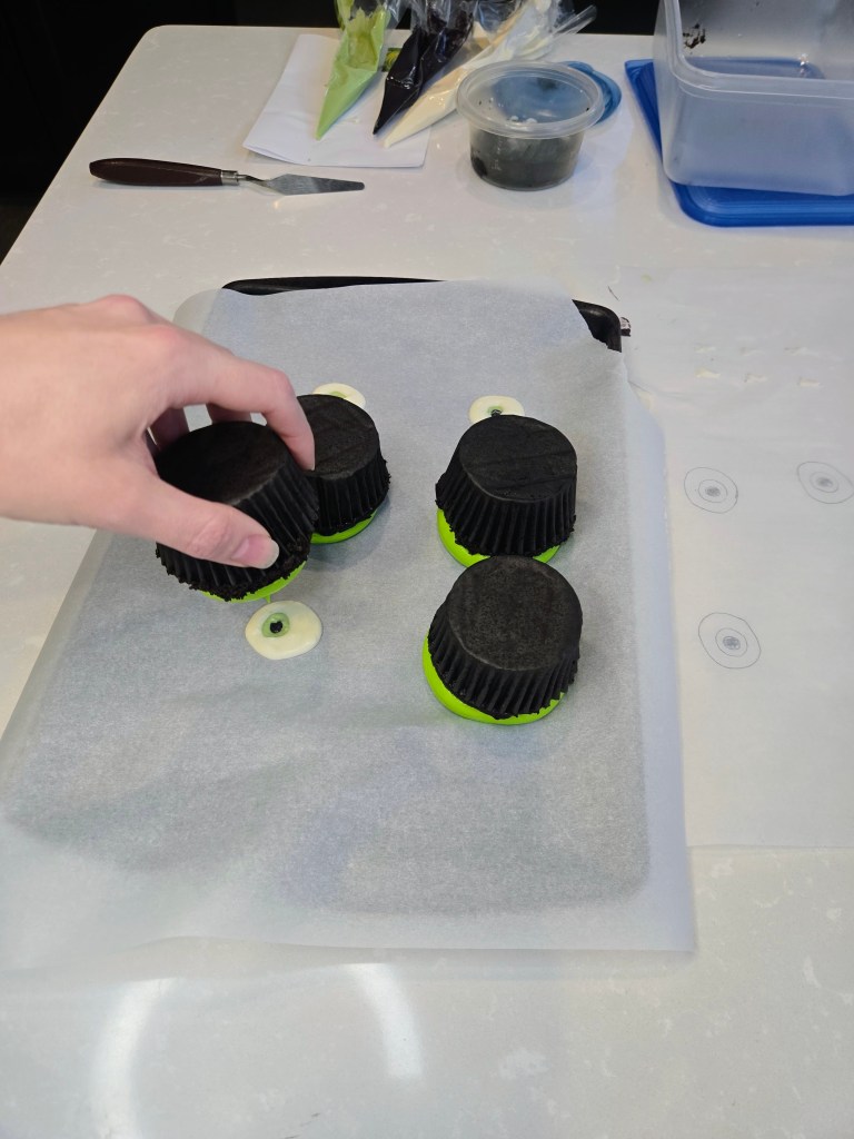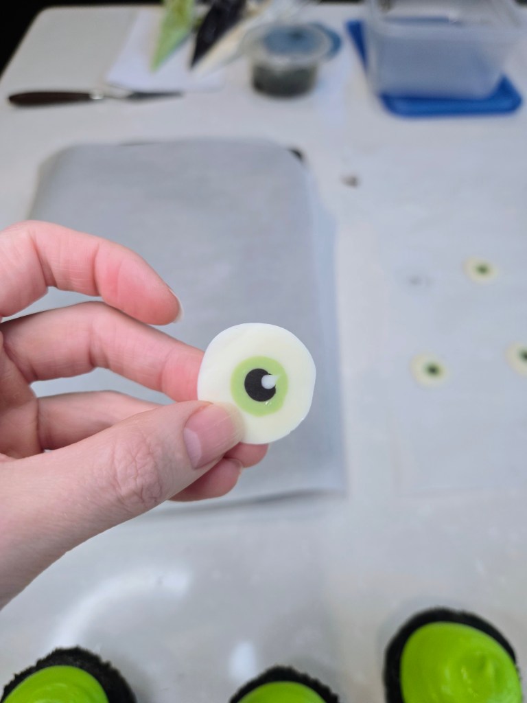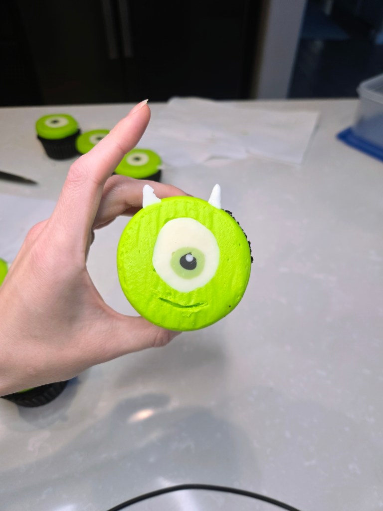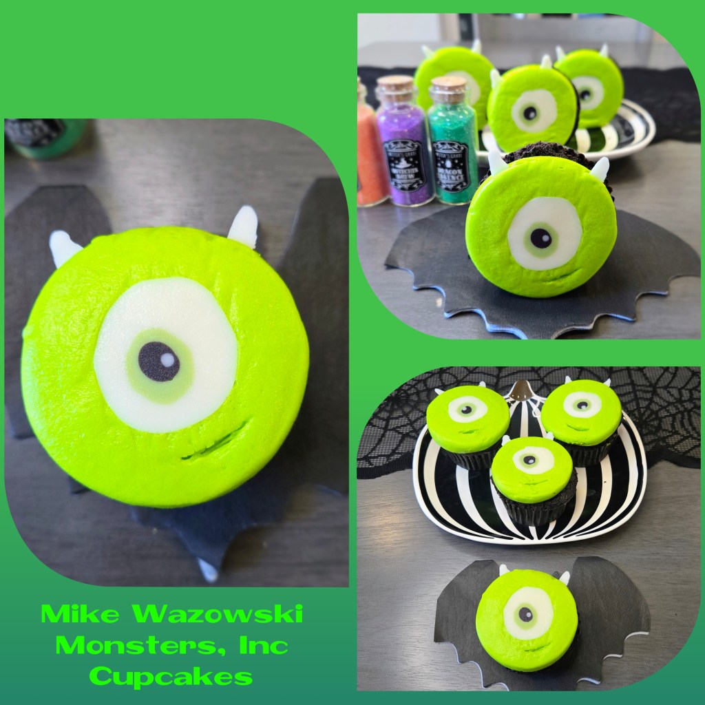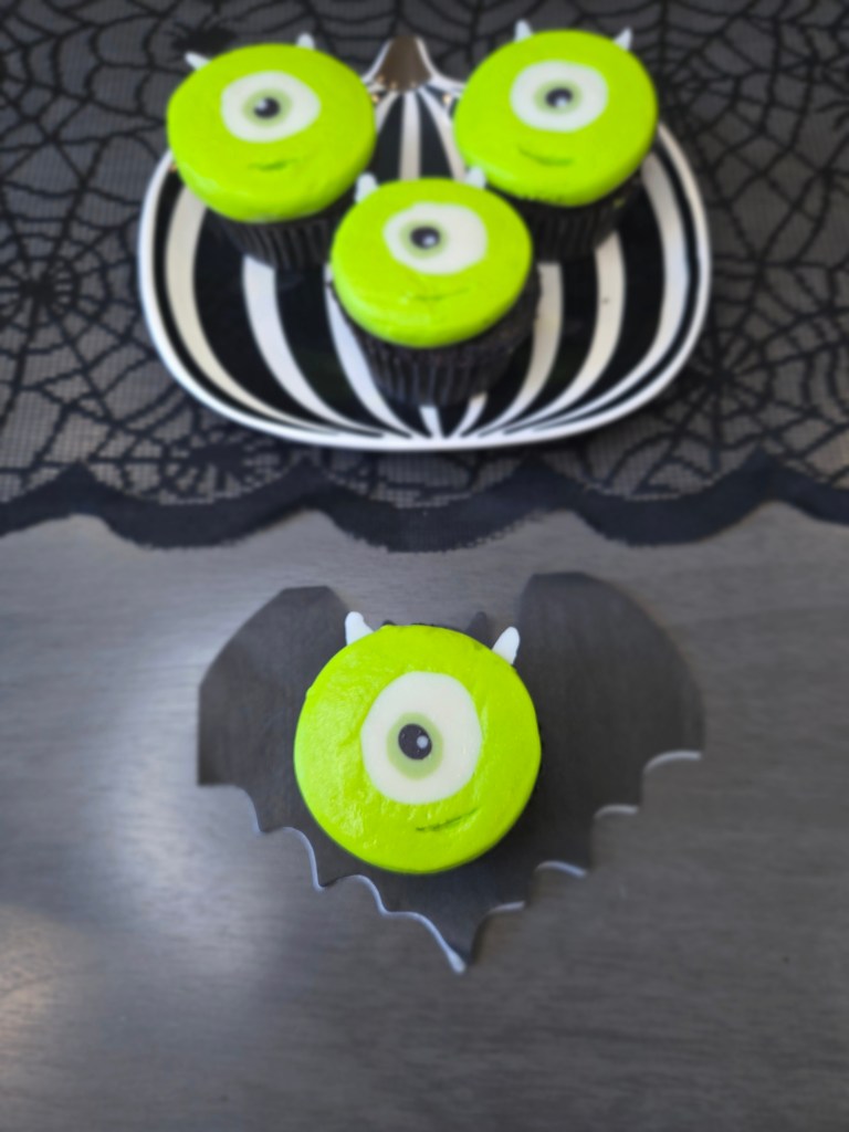 If you’re eye-nterested in making your own little green guys, you’re in luck because I’ve got both a video tutorial and a photo step-by-step ready to guide you through the monster madness. Just follow along, and you’ll be frosting like a pro Scarer in no time. Don’t worry, there’s no need for ‘2319’ level of panic…these cupcakes are way easier to assemble than sneaking a kid through Monstropolis. Whether you’re team Scare Floor or Laugh Power, this tutorial’s got all the tips you need to make cupcakes so cute, even Roz would crack a smile (probably while saying, “I’m watching you, Wazowski.”). You need: