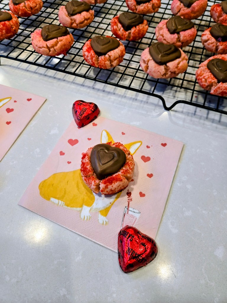 These gluten free strawberry Kiss cookies are what happens when Valentine’s Day meets zero patience and maximum sparkle. Soft strawberry cookies get rolled in pink and red sanding sugar (because choosing just one felt wrong), then crowned with a strawberry crème heart-shaped Kiss…a.k.a., a chocolatey little love bomb. They’re cute, festive, and ready in under 30 minutes, which means you can absolutely make them last-minute and still look like you had your life together. Sweet, sparkly, and slightly dramatic… just how Valentine’s desserts should be. Whether you’re sharing with your favorite people or keeping them all to yourself (no judgment), these cookies are proof that love at first bite is very real.