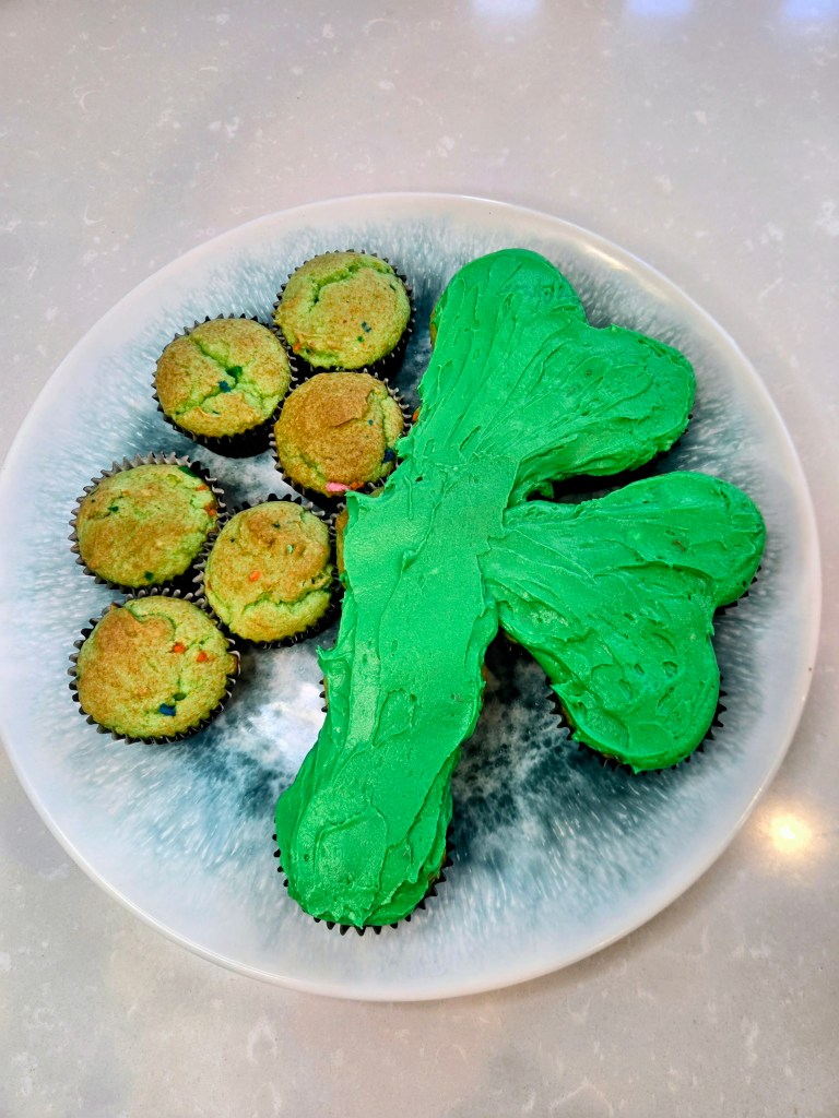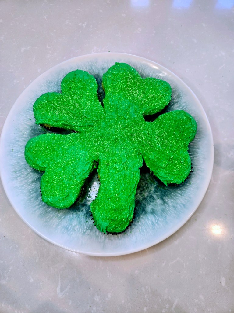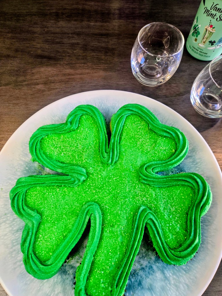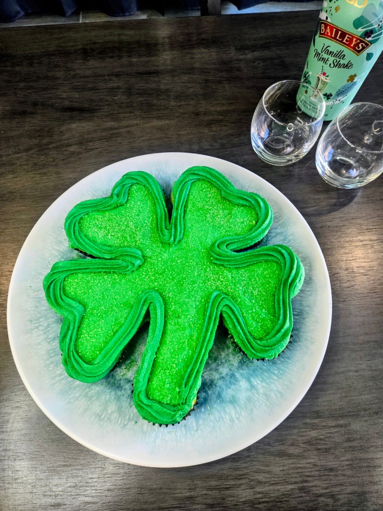 Each soft, minty cupcake is frosted and nestled into the clover shape so everyone can just grab a piece and go…no slicing, no ceremony, just sweet St. Paddy’s chaos. They’re festive, a little extra, and exactly the kind of dessert that makes people say, “Well aren’t you the lucky one?” And honestly, if Baileys, mint, and cupcakes in the shape of a four-leaf clover don’t count as hitting the dessert jackpot, I don’t know what does. Here’s what you need to make your own pull-apart lucky charm: