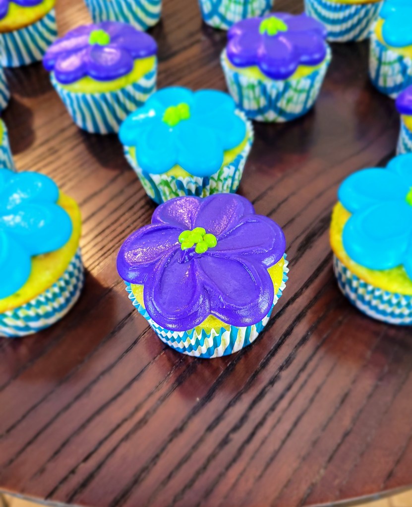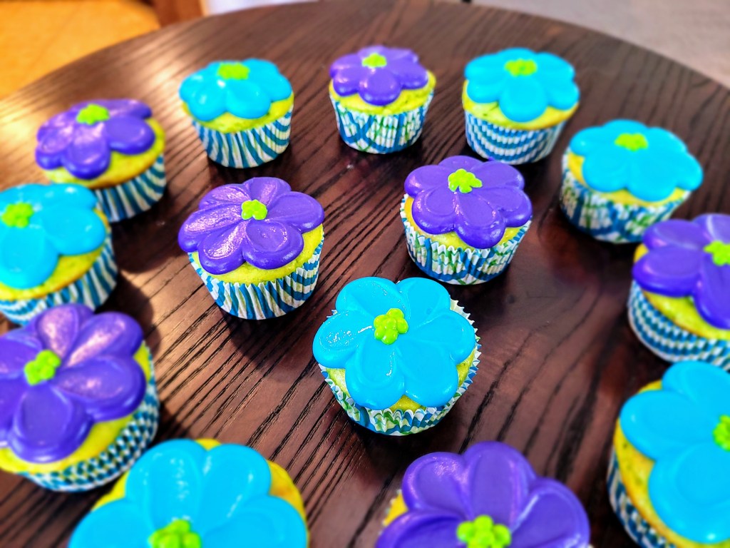 142 cal/27 c/2.2 f/3.5 p per cupcakeWatch a quick video to see how I piped the flowers on each of these cupcakes! It’s super simple with minimal piping tips and tools needed.